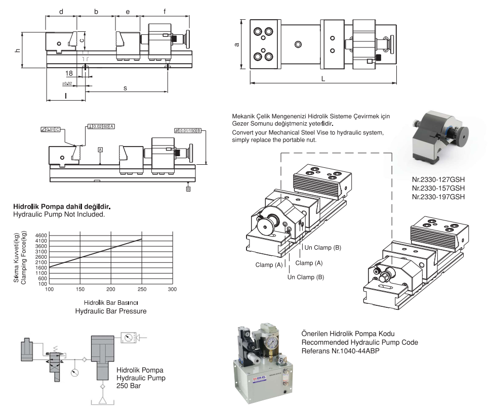 çalışmalarınızda 250 bar hidrolik basınç ile iş parçalarınızı kolay bir şekilde bağlama