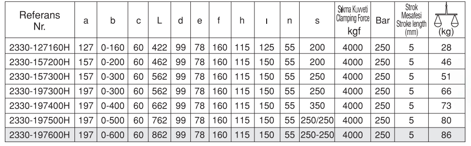 Ürün Nr. 2330 Hidrolik Çelik Mengene