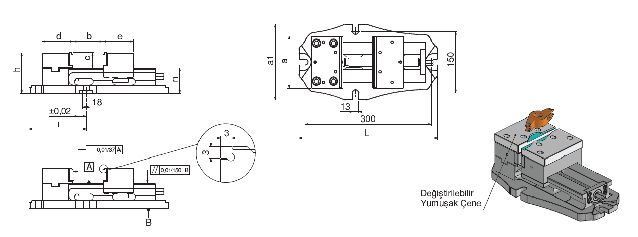• Yumuşak çeneler, herhangi bir sökme işlemi yapılmadan mengeneye monte edilir.